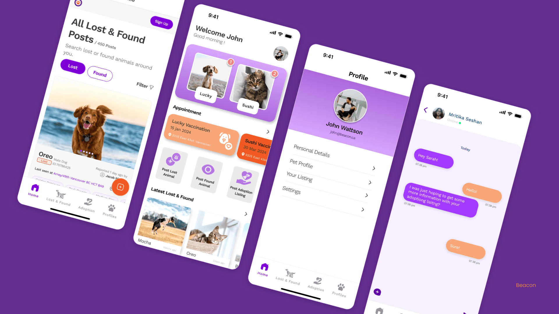 With an intuitive interface and real-time updates, Beacon empowers users to act fast, spread awareness, and reunite pets with their families. The app also supports adoption listings and foster coordination, creating a full-circle solution for animal care and rescue.